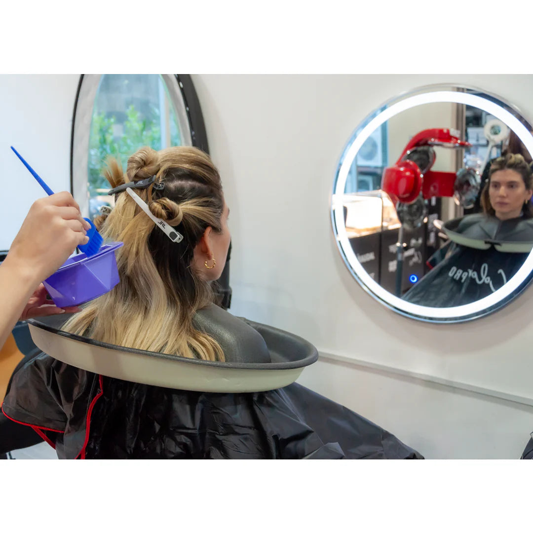 Es fácil de limpiar y muy higiénica, evita irritaciones en la piel al prevenir que los productos químicos escurran por la piel. Es ideal tanto para salones como para domicilios.